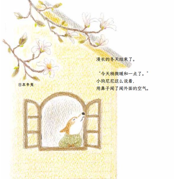 这本书的主角是一只小狗,名叫尼尼,以日本秋田犬的形象出现。作者是日本绘本作家、插画家秋草爱。我们跟着小狗尼尼,能够来感受到这四季的变化,感受到四季的魅力。