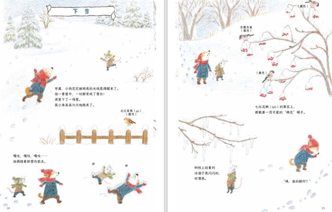 最近刚好双十二,如果要为孩子选择图书,不妨选择《小狗尼尼的春与夏》《小狗尼尼的秋与冬》,让孩子们从细节处感受四季的轮转,从细节处感受观察的魅力,顺便拿起画笔来画一画四季,看看孩子们能感受到怎样的物候变化。